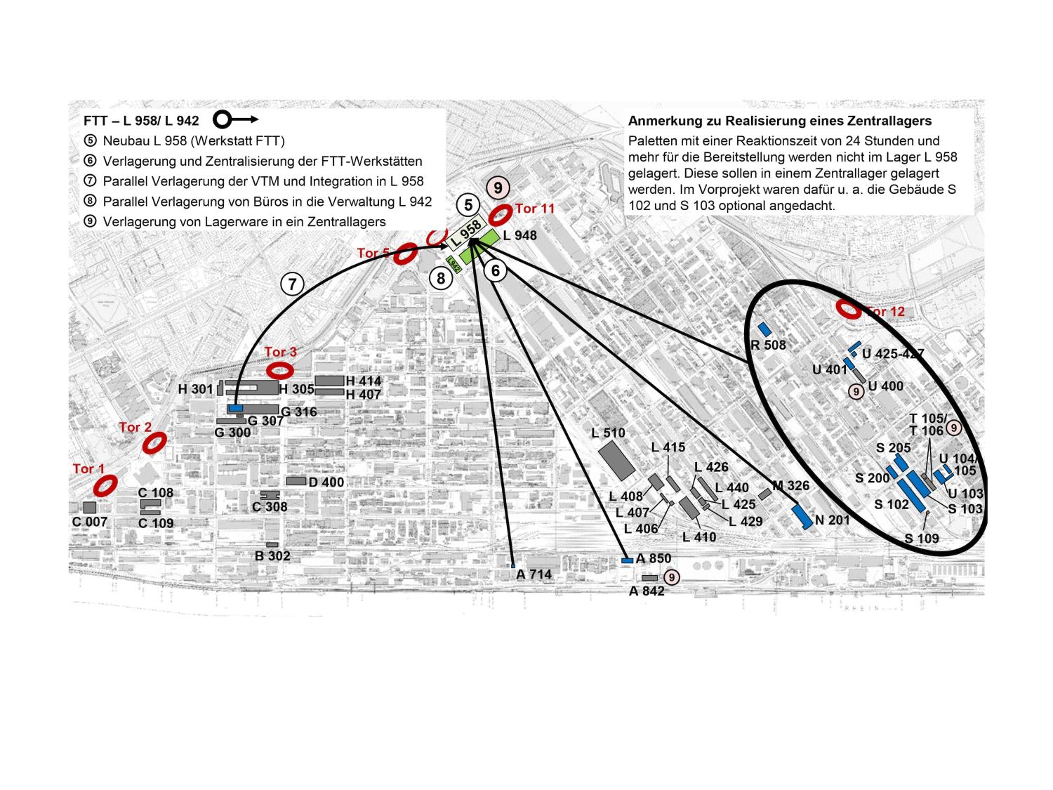 ca. 12.750 m² Werkstatt für Großmaschinen, ca. 6.680 m² Werkstatt für Fahrzeuge